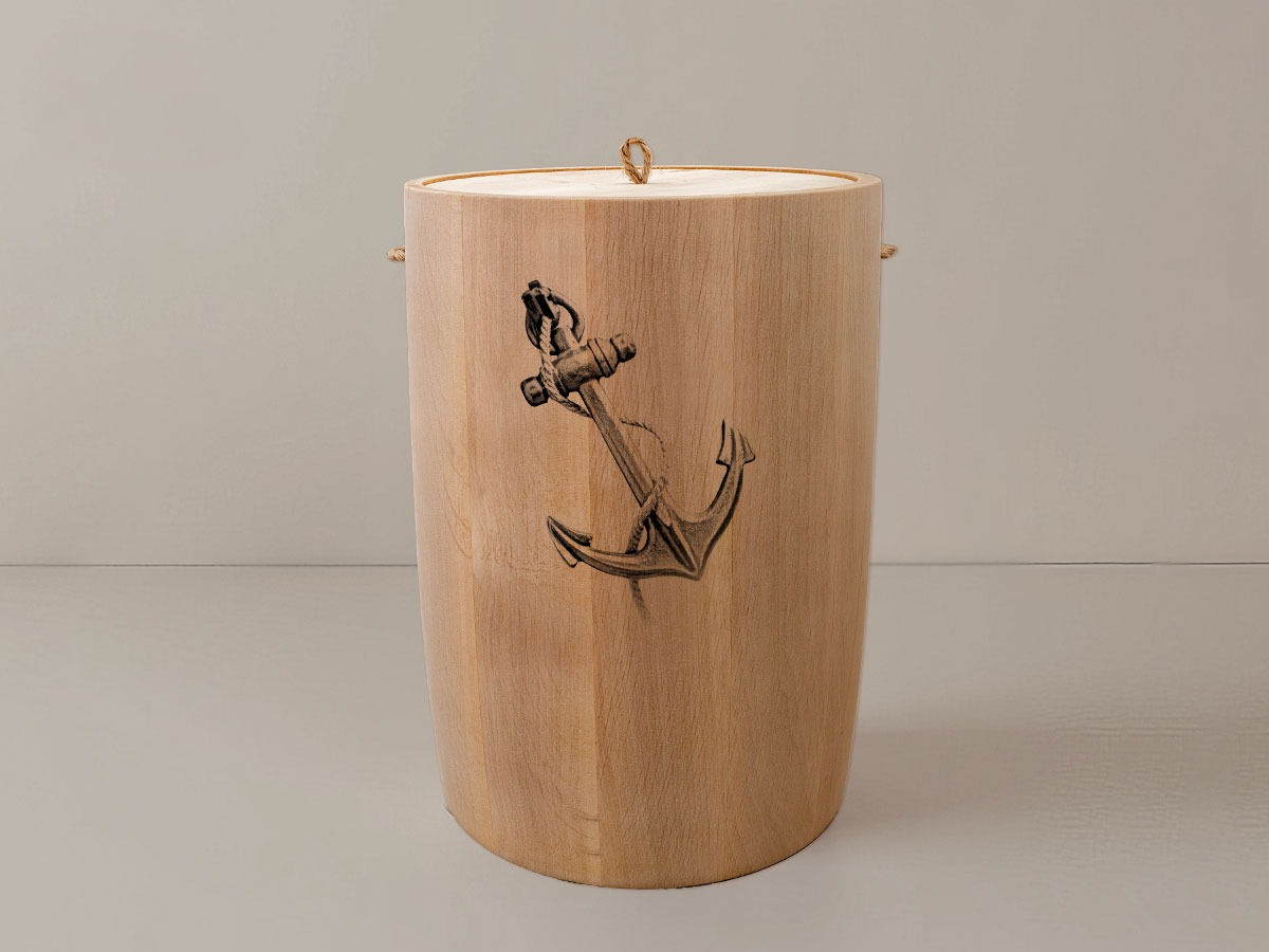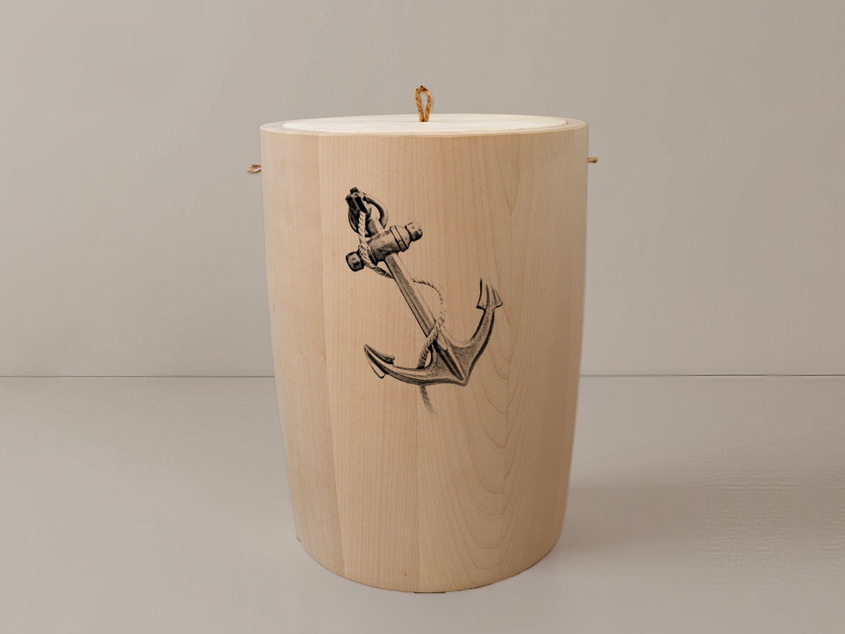Beschreibung Das Motiv zeigt einen Anker und symbolisiert Kraft und Schönheit. Es steht für Wachstum, Beständigkeit und die tiefe Verbindung zur natürlichen Welt – Werte, die in Erinnerung bleiben sollen. Das Motiv wird präzise in die Oberfläche der Urne gelasert, ohne Verwendung von Farben. So bleibt das natürliche Erscheinungsbild des Holzes erhalten und betont die schlichte Eleganz des Designs. Die Urne Unsere handgefertigten Holzurnen bestehen aus massivem Naturholz in Bio-Qualität. Jede Urne ist ein Unikat, da leichte Unterschiede in Farbe und Maserung des Holzes ganz natürlich sind. Auch die Intensität der Lasergravur kann leicht variieren, was den individuellen Charakter jeder Urne unterstreicht. Karl & Engel Urnen sind schadstofffrei und vollständig biologisch abbaubar. Die Oberfläche wird mit rein natürlichen Produkten wie Bienenwachs, Leinöl, Kreidefarbe oder Schellack behandelt. Auf Wunsch fertigen wir auch vegane Urnen. Varianten Unsere Holzurnen sind in folgenden Holzarten erhältlich: Ahorn Eiche Erle Fichte Weiß Fichte Natur Die Urnenmodelle H11 Ahorn, H12 Erle, H17 Fichte Weiß und H24 Fichte sind FriedWald-zertifiziert und auf der FriedWald-Website gelistet. Auf Anfrage können wir weitere Varianten erstellen. Zertifizierung und Nachhaltigkeit Unsere Urnen werden zu 100% in Deutschland gefertigt und ausschließlich aus zertifiziertem FSC-Holz hergestellt. Sie sind vollständig biologisch abbaubar und erfüllen die Anforderungen für eine umweltfreundliche Bestattung. Technische Details Passend für eine Aschekapsel mit den Maßen 17,5 cm x 23 cm Inklusive Ablasskordel aus Naturfaser Handgefertigt aus Naturholz Rein natürliche Materialien und Oberflächenbehandlung Zertifiziertes Holz (FSC) Vollständig biologisch abbaubar Mit unseren hochwertigen Holzurnen bieten wir eine natürliche und würdige letzte Ruhestätte. Durch die Kombination aus traditioneller Handwerkskunst und umweltfreundlichen Materialien entsteht ein Produkt, das sowohl ästhetisch ansprechend als auch nachhaltig ist. Das Motiv zeigt einen Anker und symbolisiert Kraft und Schönheit. Es steht für Wachstum, Beständigkeit und die tiefe Verbindung zur natürlichen Welt – Werte, die in Erinnerung bleiben sollen. Das Motiv wird präzise in die Oberfläche der Urne gelasert, ohne Verwendung von Farben. So bleibt das natürliche Erscheinungsbild des Holzes erhalten und betont die schlichte Eleganz des Designs. Die Urne Unsere handgefertigten Holzurnen bestehen aus massivem Naturholz in Bio-Qualität. Jede Urne ist ein Unikat, da leichte Unterschiede in Farbe und Maserung des Holzes ganz natürlich sind. Auch die Intensität der Lasergravur kann leicht variieren, was den individuellen Charakter jeder Urne unterstreicht. Karl & Engel Urnen sind schadstofffrei und vollständig biologisch abbaubar. Die Oberfläche wird mit rein natürlichen Produkten wie Bienenwachs, Leinöl, Kreidefarbe oder Schellack behandelt. Auf Wunsch fertigen wir auch vegane Urnen. Varianten Unsere Holzurnen sind in folgenden Holzarten erhältlich: Ahorn Eiche Erle Fichte Weiß Fichte Natur Die Urnenmodelle H11 Ahorn, H12 Erle, H17 Fichte Weiß und H24 Fichte sind FriedWald-zertifiziert und auf der FriedWald-Website gelistet. Auf Anfrage können wir weitere Varianten erstellen. Zertifizierung und Nachhaltigkeit Unsere Urnen werden zu 100% in Deutschland gefertigt und ausschließlich aus zertifiziertem FSC-Holz hergestellt. Sie sind vollständig biologisch abbaubar und erfüllen die Anforderungen für eine umweltfreundliche Bestattung. Technische Details Passend für eine Aschekapsel mit den Maßen 17,5 cm x 23 cm Inklusive Ablasskordel aus Naturfaser Handgefertigt aus Naturholz Rein natürliche Materialien und Oberflächenbehandlung Zertifiziertes Holz (FSC) Vollständig biologisch abbaubar Mit unseren hochwertigen Holzurnen bieten wir eine natürliche und würdige letzte Ruhestätte. Durch die Kombination aus traditioneller Handwerkskunst und umweltfreundlichen Materialien entsteht ein Produkt, das sowohl ästhetisch ansprechend als auch nachhaltig ist.