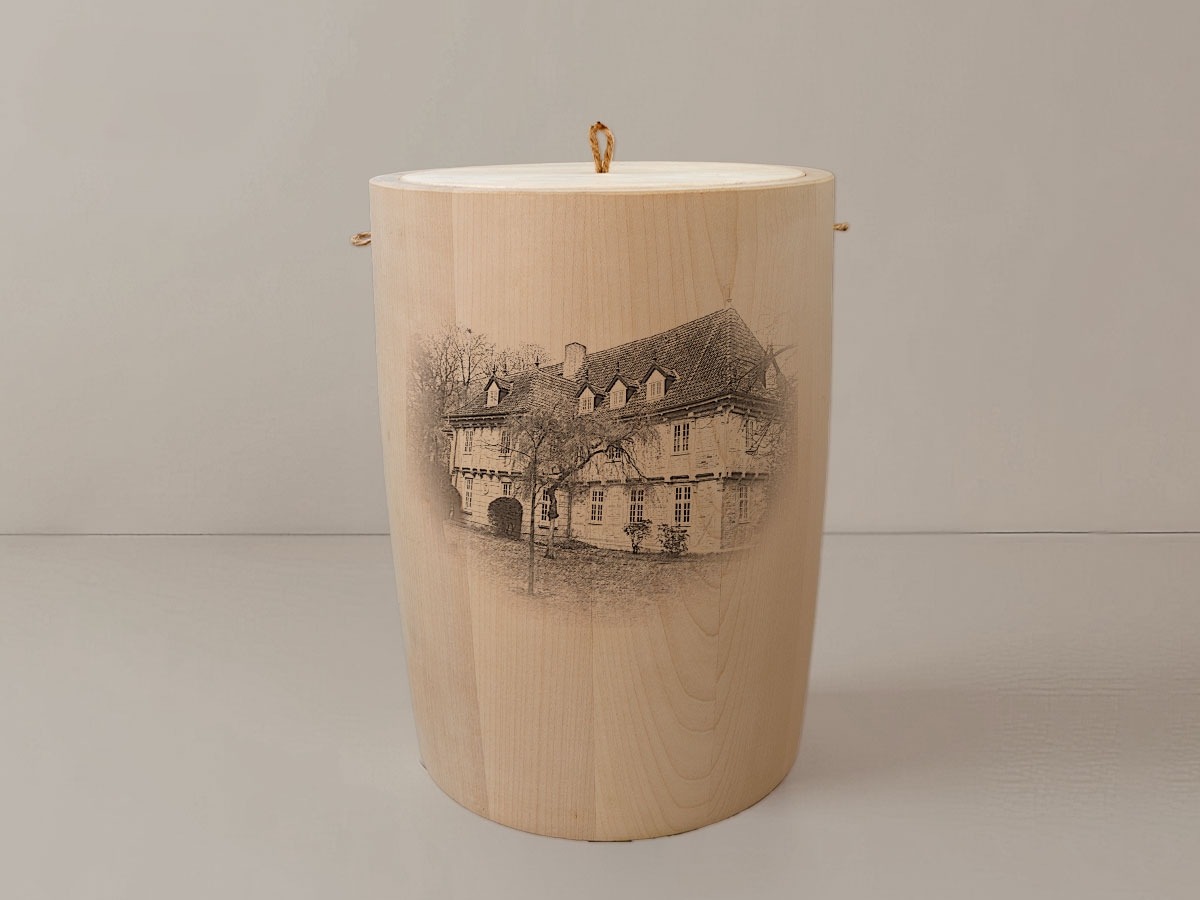 Beschreibung Das Motiv zeigt das Gut Sandbeck und verkörpert die tiefe Verbundenheit zur Heimat. Es steht für Herkunft, Identität und Erinnerungen – Werte, die in Erinnerung bleiben sollen. Das Motiv wird präzise in die Oberfläche der Urne gelasert, ohne Verwendung von Farben. So bleibt das natürliche Erscheinungsbild des Holzes erhalten und betont die schlichte Eleganz des Designs. Die Urne Unsere handgefertigten Holzurnen bestehen aus massivem Naturholz in Bio-Qualität. Jede Urne ist ein Unikat, da leichte Unterschiede in Farbe und Maserung des Holzes ganz natürlich sind. Auch die Intensität der Lasergravur kann leicht variieren, was den individuellen Charakter jeder Urne unterstreicht. Karl & Engel Urnen sind schadstofffrei und vollständig biologisch abbaubar. Die Oberfläche wird mit rein natürlichen Produkten wie Bienenwachs, Leinöl, Kreidefarbe oder Schellack behandelt. Auf Wunsch fertigen wir auch vegane Urnen. Varianten Unsere Holzurnen sind in folgenden Holzarten erhältlich: Ahorn Eiche Erle Fichte Weiß Fichte Natur Die Urnenmodelle H11 Ahorn, H12 Erle, H17 Fichte Weiß und H24 Fichte sind FriedWald-zertifiziert und auf der FriedWald-Website gelistet. Auf Anfrage können wir weitere Varianten erstellen. Zertifizierung und Nachhaltigkeit Unsere Urnen werden zu 100% in Deutschland gefertigt und ausschließlich aus zertifiziertem FSC-Holz hergestellt. Sie sind vollständig biologisch abbaubar und erfüllen die Anforderungen für eine umweltfreundliche Bestattung. Technische Details Passend für eine Aschekapsel mit den Maßen 17,5 cm x 23 cm Inklusive Ablasskordel aus Naturfaser Handgefertigt aus Naturholz Rein natürliche Materialien und Oberflächenbehandlung Zertifiziertes Holz (FSC) Vollständig biologisch abbaubar Mit unseren hochwertigen Holzurnen bieten wir eine natürliche und würdige letzte Ruhestätte. Durch die Kombination aus traditioneller Handwerkskunst und umweltfreundlichen Materialien entsteht ein Produkt, das sowohl ästhetisch ansprechend als auch nachhaltig ist. Das Motiv zeigt das Gut Sandbeck und verkörpert die tiefe Verbundenheit zur Heimat. Es steht für Herkunft, Identität und Erinnerungen – Werte, die in Erinnerung bleiben sollen. Das Motiv wird präzise in die Oberfläche der Urne gelasert, ohne Verwendung von Farben. So bleibt das natürliche Erscheinungsbild des Holzes erhalten und betont die schlichte Eleganz des Designs. Die Urne Unsere handgefertigten Holzurnen bestehen aus massivem Naturholz in Bio-Qualität. Jede Urne ist ein Unikat, da leichte Unterschiede in Farbe und Maserung des Holzes ganz natürlich sind. Auch die Intensität der Lasergravur kann leicht variieren, was den individuellen Charakter jeder Urne unterstreicht. Karl & Engel Urnen sind schadstofffrei und vollständig biologisch abbaubar. Die Oberfläche wird mit rein natürlichen Produkten wie Bienenwachs, Leinöl, Kreidefarbe oder Schellack behandelt. Auf Wunsch fertigen wir auch vegane Urnen. Varianten Unsere Holzurnen sind in folgenden Holzarten erhältlich: Ahorn Eiche Erle Fichte Weiß Fichte Natur Die Urnenmodelle H11 Ahorn, H12 Erle, H17 Fichte Weiß und H24 Fichte sind FriedWald-zertifiziert und auf der FriedWald-Website gelistet. Auf Anfrage können wir weitere Varianten erstellen. Zertifizierung und Nachhaltigkeit Unsere Urnen werden zu 100% in Deutschland gefertigt und ausschließlich aus zertifiziertem FSC-Holz hergestellt. Sie sind vollständig biologisch abbaubar und erfüllen die Anforderungen für eine umweltfreundliche Bestattung. Technische Details Passend für eine Aschekapsel mit den Maßen 17,5 cm x 23 cm Inklusive Ablasskordel aus Naturfaser Handgefertigt aus Naturholz Rein natürliche Materialien und Oberflächenbehandlung Zertifiziertes Holz (FSC) Vollständig biologisch abbaubar Mit unseren hochwertigen Holzurnen bieten wir eine natürliche und würdige letzte Ruhestätte. Durch die Kombination aus traditioneller Handwerkskunst und umweltfreundlichen Materialien entsteht ein Produkt, das sowohl ästhetisch ansprechend als auch nachhaltig ist.