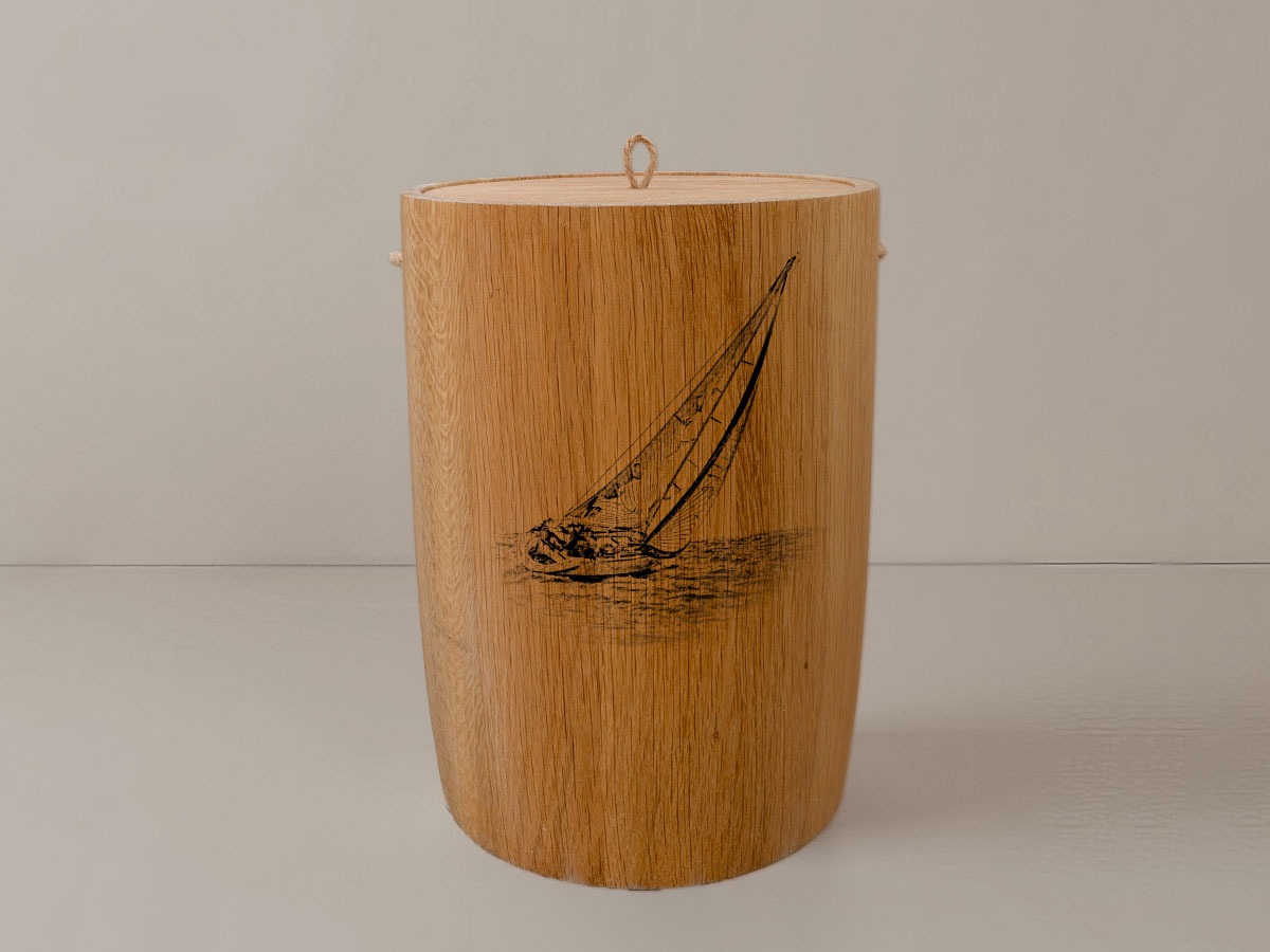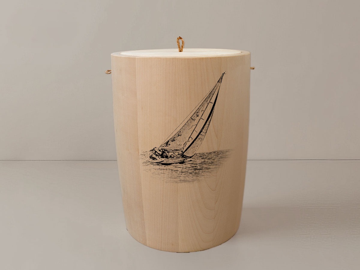 Beschreibung Das maritime Schiffsmotiv eines Seglers steht für Beständigkeit, Freiheit und die Verbindung zur See – Werte, die in Erinnerung bleiben sollen. Das Motiv wird präzise in die Oberfläche der Urne gelasert, ohne Verwendung von Farben. So bleibt das natürliche Erscheinungsbild des Holzes erhalten und betont die schlichte Eleganz des Designs. Die Urne Unsere handgefertigten Holzurnen bestehen aus massivem Naturholz in Bio-Qualität. Jede Urne ist ein Unikat, da leichte Unterschiede in Farbe und Maserung des Holzes ganz natürlich sind. Auch die Intensität der Lasergravur kann leicht variieren, was den individuellen Charakter jeder Urne unterstreicht. Karl & Engel Urnen sind schadstofffrei und vollständig biologisch abbaubar. Die Oberfläche wird mit rein natürlichen Produkten wie Bienenwachs, Leinöl, Kreidefarbe oder Schellack behandelt. Auf Wunsch fertigen wir auch vegane Urnen. Varianten Unsere Holzurnen sind in folgenden Holzarten erhältlich: Ahorn Eiche Erle Fichte Weiß Fichte Natur Die Urnenmodelle H11 Ahorn, H12 Erle, H17 Fichte Weiß und H24 Fichte sind FriedWald-zertifiziert und auf der FriedWald-Website gelistet. Auf Anfrage können wir weitere Varianten erstellen. Zertifizierung und Nachhaltigkeit Unsere Urnen werden zu 100% in Deutschland gefertigt und ausschließlich aus zertifiziertem FSC-Holz hergestellt. Sie sind vollständig biologisch abbaubar und erfüllen die Anforderungen für eine umweltfreundliche Bestattung. Technische Details Passend für eine Aschekapsel mit den Maßen 17,5 cm x 23 cm Inklusive Ablasskordel aus Naturfaser Handgefertigt aus Naturholz Rein natürliche Materialien und Oberflächenbehandlung Zertifiziertes Holz (FSC) Vollständig biologisch abbaubar Mit unseren hochwertigen Holzurnen bieten wir eine natürliche und würdige letzte Ruhestätte. Durch die Kombination aus traditioneller Handwerkskunst und umweltfreundlichen Materialien entsteht ein Produkt, das sowohl ästhetisch ansprechend als auch nachhaltig ist. Das maritime Schiffsmotiv eines Seglers steht für Beständigkeit, Freiheit und die Verbindung zur See – Werte, die in Erinnerung bleiben sollen. Das Motiv wird präzise in die Oberfläche der Urne gelasert, ohne Verwendung von Farben. So bleibt das natürliche Erscheinungsbild des Holzes erhalten und betont die schlichte Eleganz des Designs. Die Urne Unsere handgefertigten Holzurnen bestehen aus massivem Naturholz in Bio-Qualität. Jede Urne ist ein Unikat, da leichte Unterschiede in Farbe und Maserung des Holzes ganz natürlich sind. Auch die Intensität der Lasergravur kann leicht variieren, was den individuellen Charakter jeder Urne unterstreicht. Karl & Engel Urnen sind schadstofffrei und vollständig biologisch abbaubar. Die Oberfläche wird mit rein natürlichen Produkten wie Bienenwachs, Leinöl, Kreidefarbe oder Schellack behandelt. Auf Wunsch fertigen wir auch vegane Urnen. Varianten Unsere Holzurnen sind in folgenden Holzarten erhältlich: Ahorn Eiche Erle Fichte Weiß Fichte Natur Die Urnenmodelle H11 Ahorn, H12 Erle, H17 Fichte Weiß und H24 Fichte sind FriedWald-zertifiziert und auf der FriedWald-Website gelistet. Auf Anfrage können wir weitere Varianten erstellen. Zertifizierung und Nachhaltigkeit Unsere Urnen werden zu 100% in Deutschland gefertigt und ausschließlich aus zertifiziertem FSC-Holz hergestellt. Sie sind vollständig biologisch abbaubar und erfüllen die Anforderungen für eine umweltfreundliche Bestattung. Technische Details Passend für eine Aschekapsel mit den Maßen 17,5 cm x 23 cm Inklusive Ablasskordel aus Naturfaser Handgefertigt aus Naturholz Rein natürliche Materialien und Oberflächenbehandlung Zertifiziertes Holz (FSC) Vollständig biologisch abbaubar Mit unseren hochwertigen Holzurnen bieten wir eine natürliche und würdige letzte Ruhestätte. Durch die Kombination aus traditioneller Handwerkskunst und umweltfreundlichen Materialien entsteht ein Produkt, das sowohl ästhetisch ansprechend als auch nachhaltig ist.