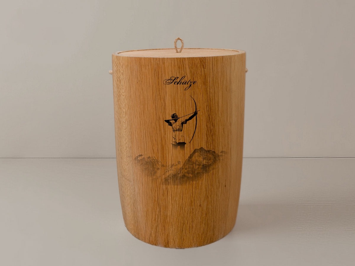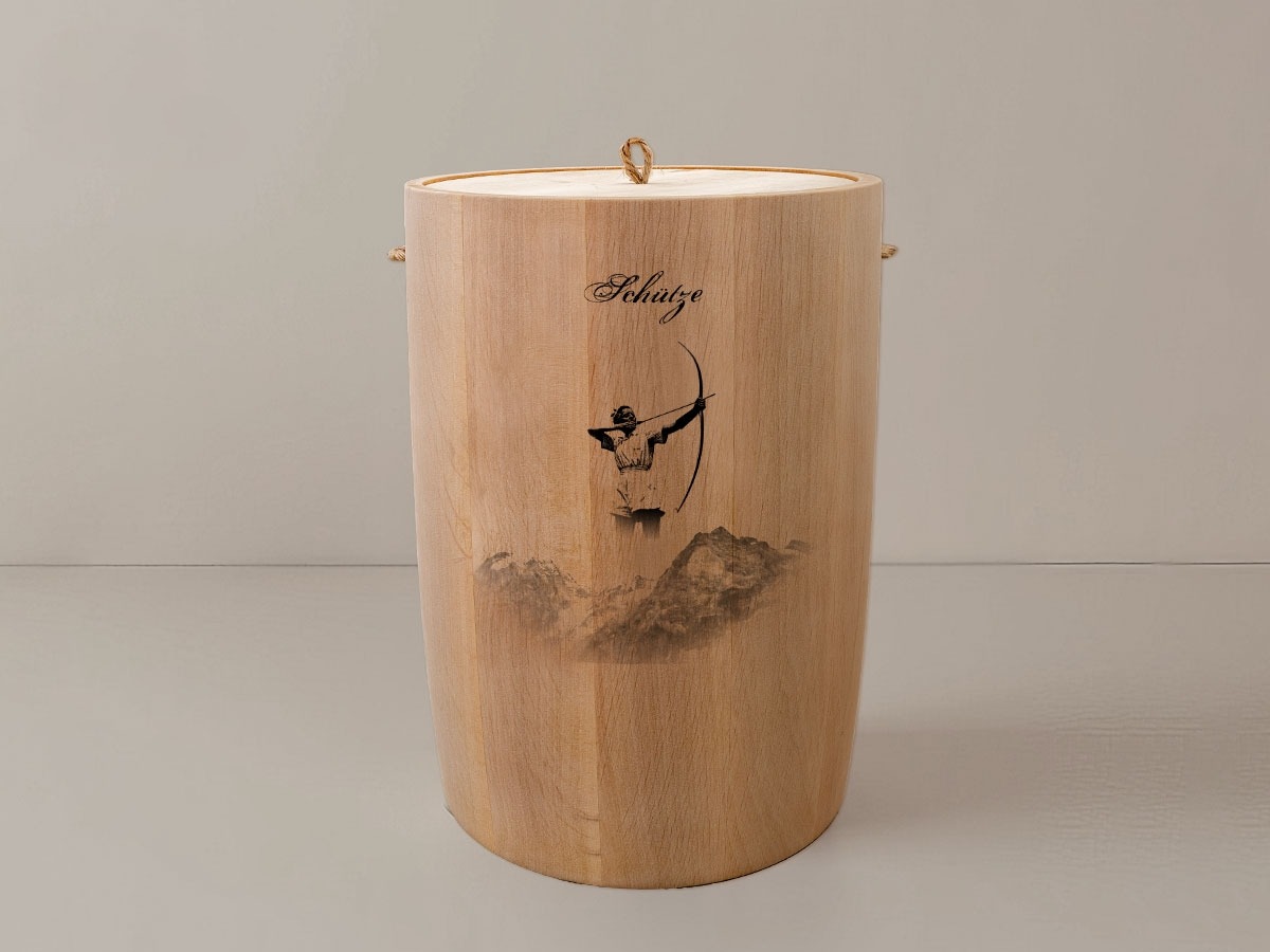 Das Sternzeichen Schütze entfaltet seine Magie durch die Verbindung von Charakter und Universum. Wie ein Pfeil, der zielgerichtet zu den Sternen fliegt, erinnert dieses Motiv an die Schöpferkraft und das Streben nach Freiheit. Es fängt die Essenz von Individualität und Abenteuerlust ein, während die lasergravierte Darstellung in die Oberfläche eindringt und das natürliche Holzbild bewahrt. Diese handgefertigte Urne spiegelt die Einzigartigkeit des Lebens wider, das in den Sternen verankert ist.