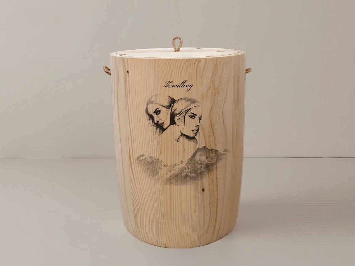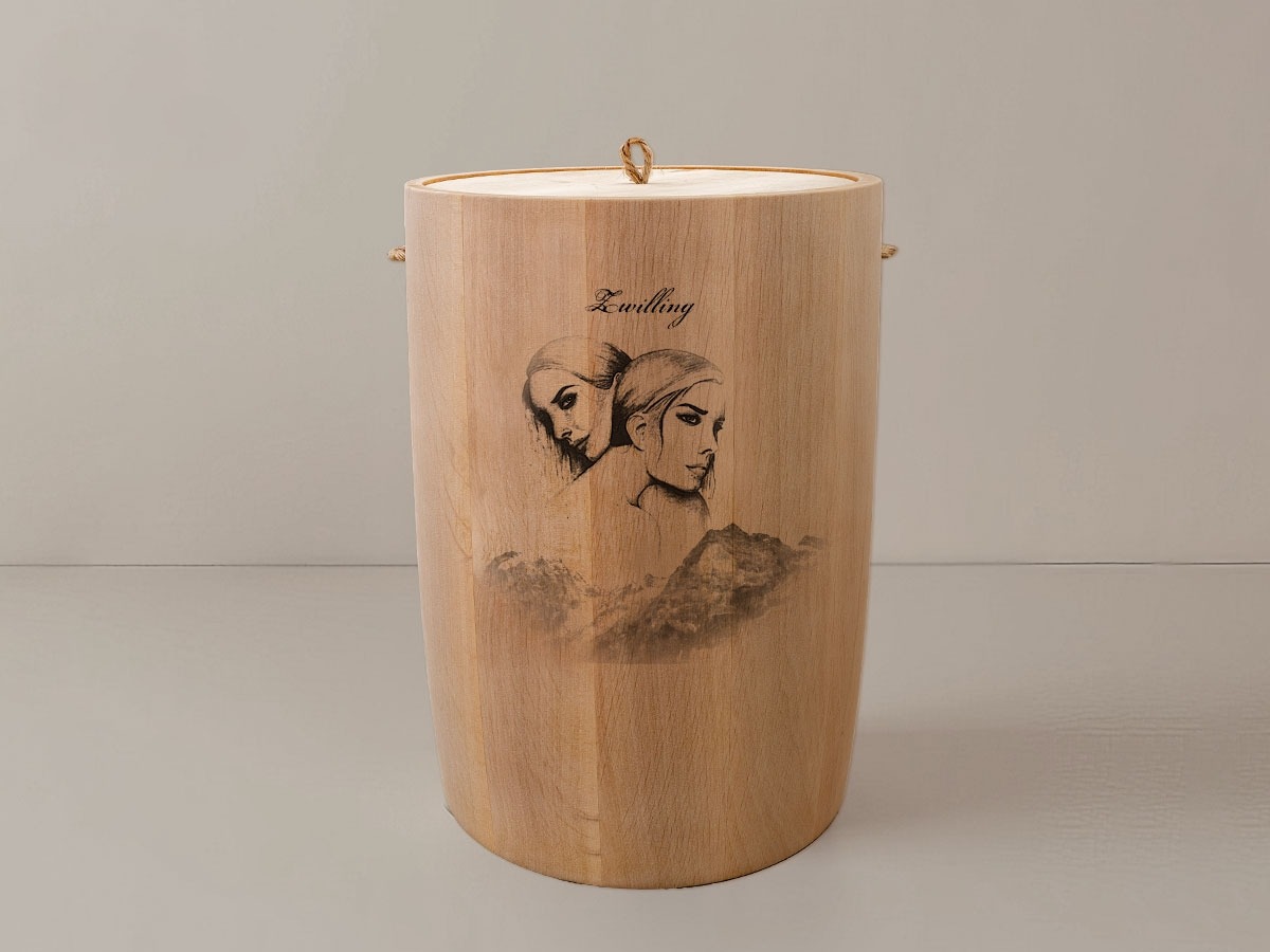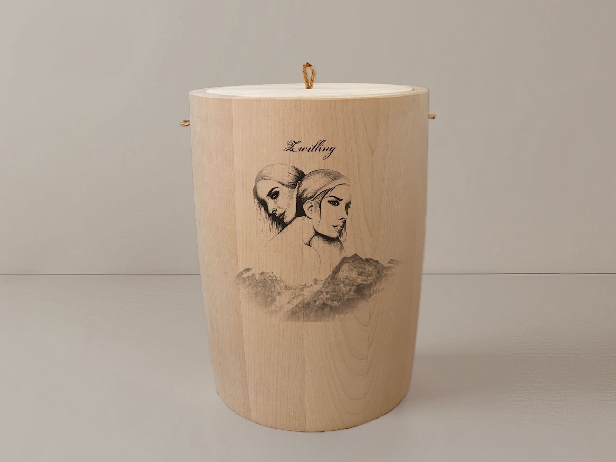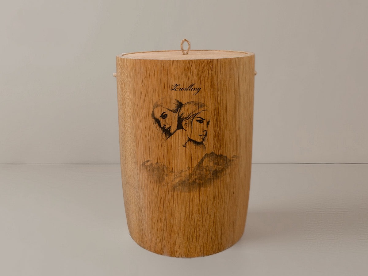 Das Motiv Sternzeichen Zwillinge fängt die duale Energie und den facettenreichen Charakter dieser astrologischen Konstellation ein. In einer harmonischen Verbindung von Himmel und Erde spiegelt sich die Neugier und Anpassungsfähigkeit wider, die für diesen Monat geborenen Menschen typisch ist. Die filigrane Lasergravur wird mit höchster Präzision in die Holzoberfläche integriert, sodass die natürliche Schönheit des Materials erhalten bleibt und das Design in seiner Schlichtheit erstrahlt.